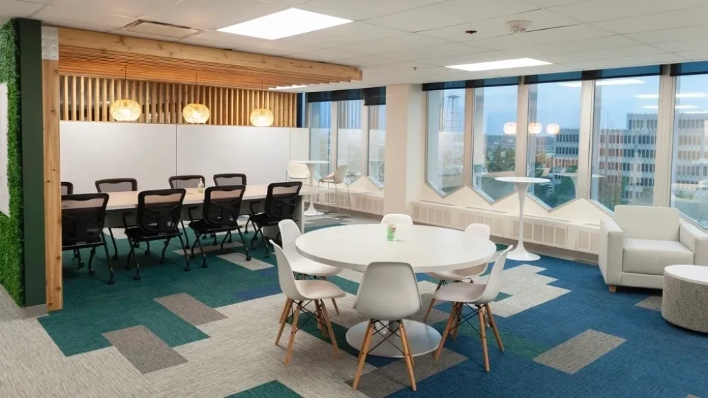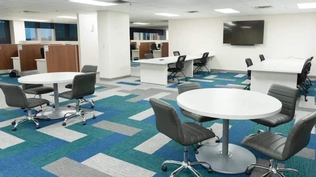 The trauma-informed child welfare spaces have been reserved for children’s services and have the capacity to handle emergency intakes, family visits, and welfare team consultations. The administrative spaces, designed with OKDHS’ staff hybrid or fully remote work schedules in mind, are a place for staff to access equipment and to facilitate employee training and culture building.